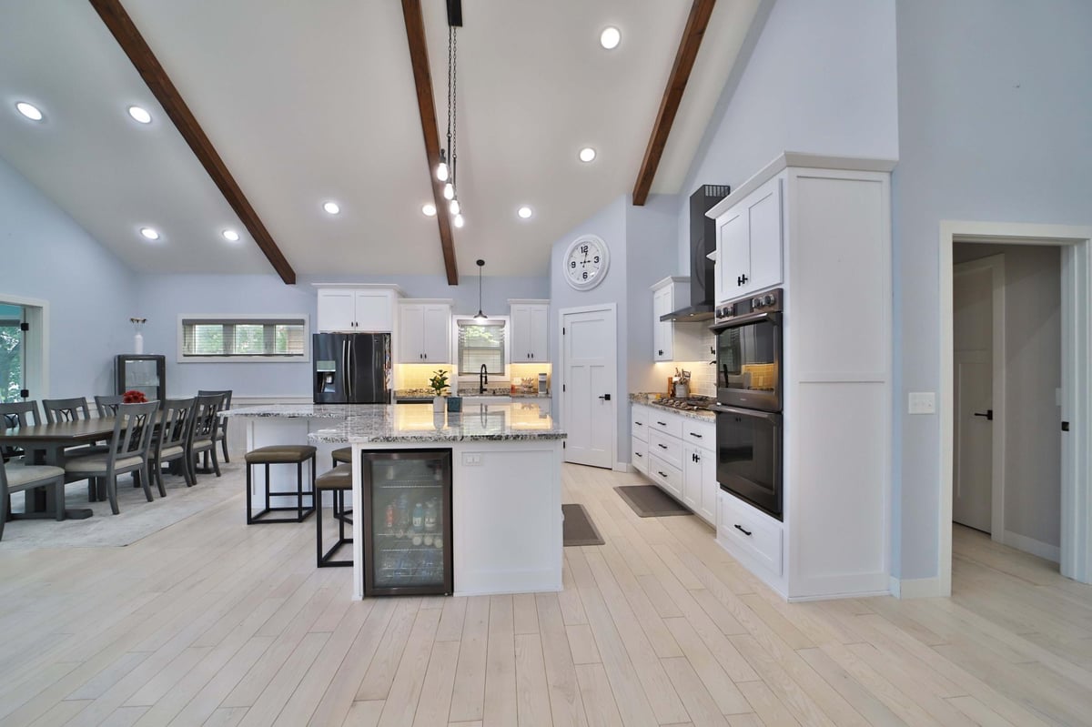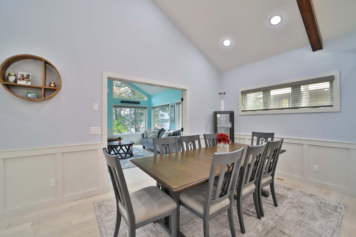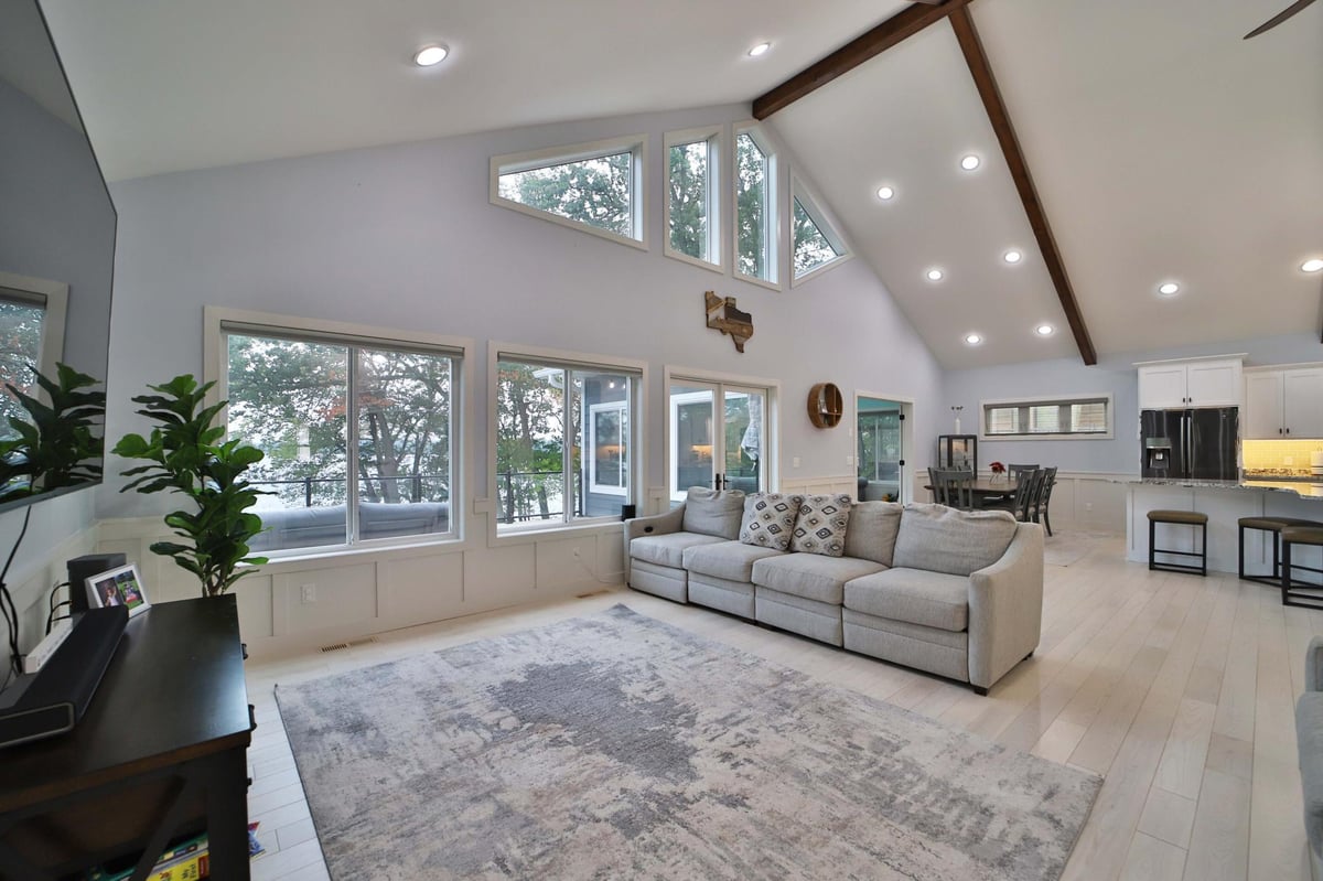 Immerse yourself in lakeside luxury with this 2019 custom-built rambler with walk out on Fish Trap Lake in Cushing, MN. Set on a private 1.38-acre lot at the end of a cul-de-sac, this spectacular home boasts over 4,400 sq ft of open-concept living space, ideal for hosting unforgettable gatherings. The main level features towering vaulted ceilings and southeastern exposure, bathing the interior in natural light and framing breathtaking sunrise views. Relax or Entertain effortlessly in the expansive great room and gourmet kitchen with stainless steel appliances and granite countertops. With 5 bedrooms, 4 bathrooms, and a finished and heated 3-stall garage, this home provides ample space for family and friends. The level yard leads to 120 feet of picturesque lake frontage with a gradual slope for easy access. The expansive lot affords the option to build a pole shed ensuring all your storage needs are met. Don't miss this rare opportunity to own a luxurious custom home on Fish Trap Lake -- contact us today to schedule a private showing and experience the ultimate lakeside living and entertaining experience.