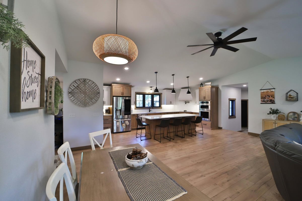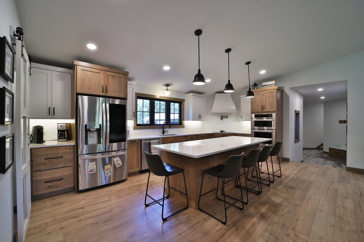 Don't miss this recently renovated, executive home on 10 acres in the heart of Lakes Country! Taken down to the studs in 2024, you'll appreciate the high-end finishes, updated floor plan, and pride of ownership throughout. Complete with custom cabinets and countertops, stainless steel appliances, a large center island, and walk-in pantry, the kitchen is sure to impress. The main floor has all living facilities with primary bedroom, en-suite bath, and laundry. Take in the picturesque, tree-covered views from any of the open, airy rooms in this home! With a large foyer and mudroom off the garage, bunk room with full bath above the garage, and separate office, you'll love the redesigned layout and ease of living. The attached, heated garage with floor drains and utility sink makes year-round living a breeze, not to mentioned the detached 3-car garage for extra storage needs. Outside, the two covered porches, thousands of acres of adjacent MP&L land, and private, wooded setting make for quintessential "up-north" living! Schedule your showing today!