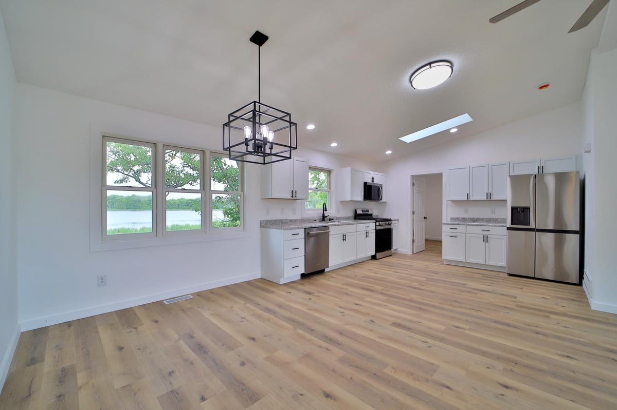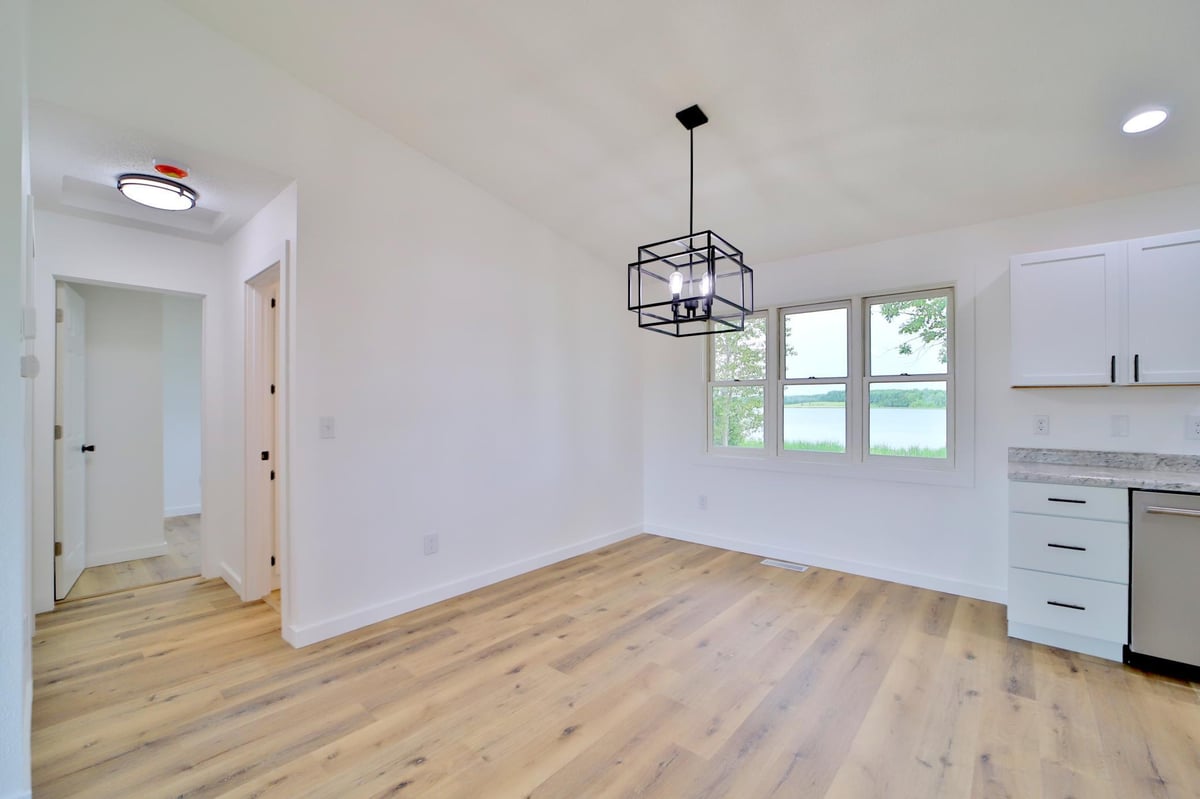 Don't miss this remodeled four bedroom, three bath home with over 350' of lake shore on Rushmeyer Lake. Home features lake front living on 5+ acres, freshly painted interior, new appliances, new light fixtures, new doors,  new trim, new deck, new roof on the house, vaulted ceilings, an open floor plan, new kitchen cabinets, new kitchen counter tops, new flooring, main floor laundry, remodeled bathrooms, tiled shower, a full finished walkout basement, new siding on the lakeside of the house, a detached garage, new mound system and so much more.