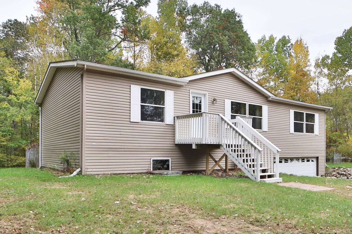 Enjoy the best of the Northwoods on 2 scenic acres! This updated home features three bedrooms and two baths on the main level, plus a large partially finished basement with plenty of room to add additional finished square footage. The large kitchen features lots of storage and a gas stove. The primary bedroom offers a walk-in closet, and en-suite bathroom. Watch wildlife from your living room! Looking for both the woods and lakes? Enjoy deeded access to beautiful Greenwood Lake. The property is just minutes away from the public beach on pelican, and public launches on Pelican, Horseshoe and Ossawinnamakee. Enjoy the nearby shopping, dining and amenities of Crosslake!