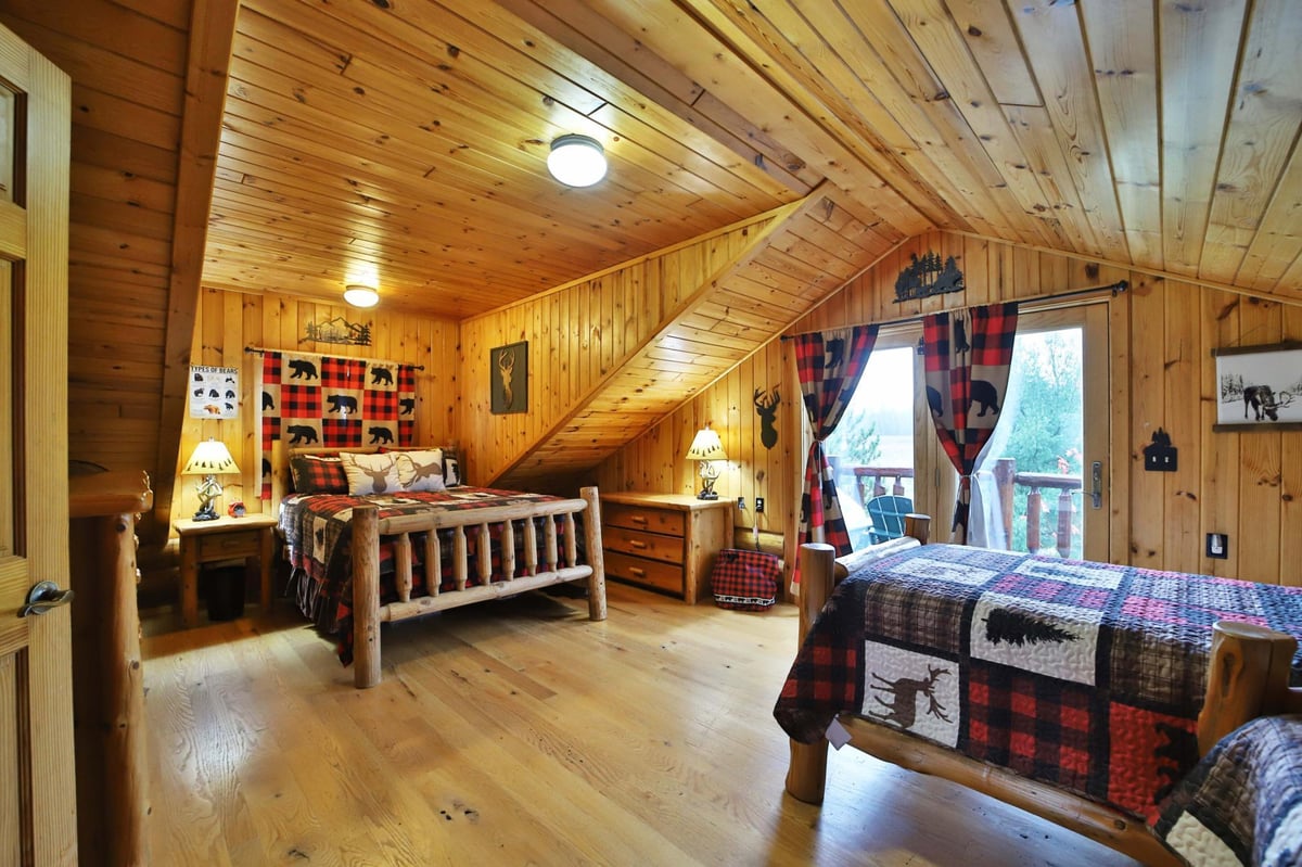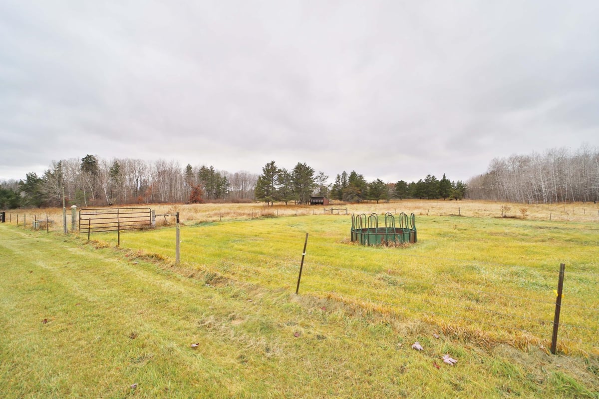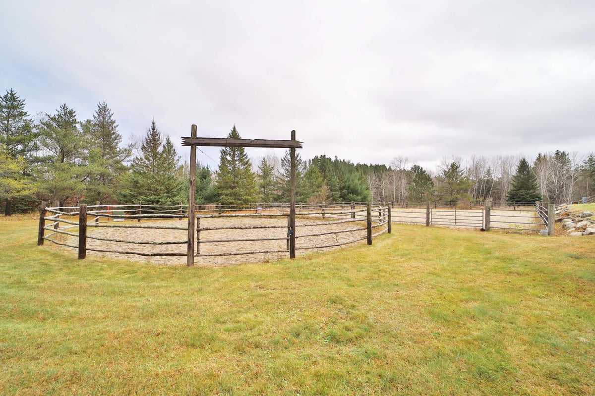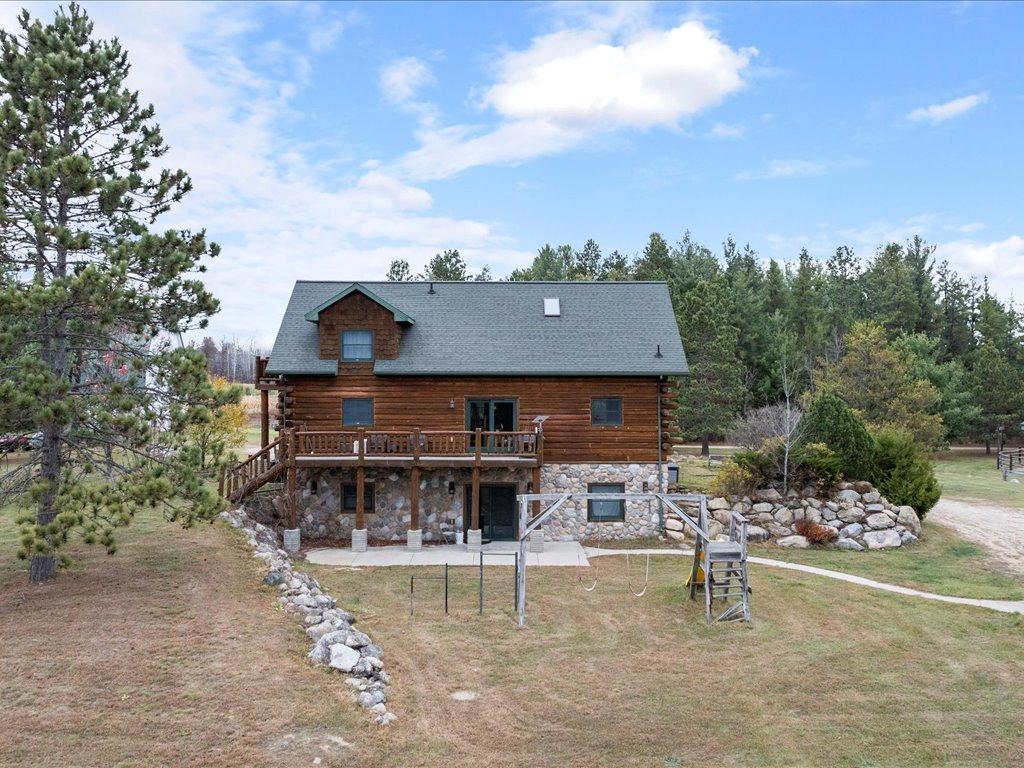 This well-built log home sits on over 10 beautiful acres bordering hundreds of acres of public land ideal for trail riding and hunting. A covered porch welcomes you into the open floor plan featuring vaulted ceilings, a kitchen with custom maple cabinets, stainless steel appliances, granite countertops, and a maple butcher block island. The cozy living room offers a gas fireplace, office nook, and ample storage. The main-level primary bedroom includes a walk-through bath with a jetted tub and tile shower, while log stairs lead to a loft bedroom with a private deck overlooking the pasture and barn. The lower level includes a bedroom, full bath, living area with epoxy floors, laundry, utility room, and private library. The detached garage is split into a heated two-stall section and a single-stall area with stairs to a two-bedroom plus loft apartment. Perfect for a hobby farm, the property includes 10 oak stalls, a tack room, blacksmith shop, hay storage, and a newer steel roof. The land is partially fenced with separate sections, its own well for two self-watering stations, an arena, training area, open pasture, wooded riding trails, and direct access to hundreds of acres of public land for recreation or hunting. The property is conveniently located just 10 minutes from Hackensack and near the Crystal Lake public access--one of central Minnesota's clearest lakes with excellent swimming. Bring your outdoor toys, horses and farm animals and make this awesome property home!