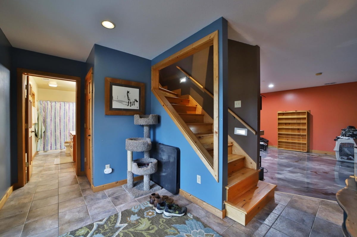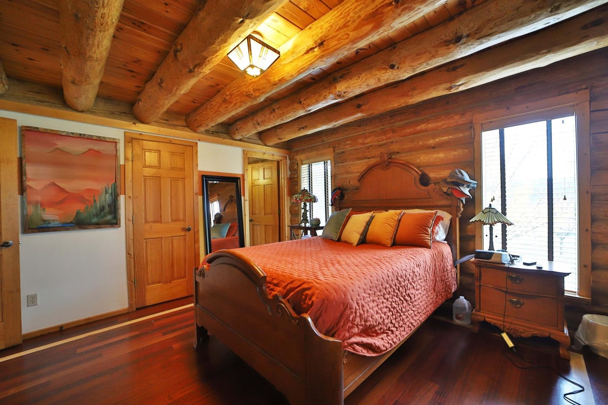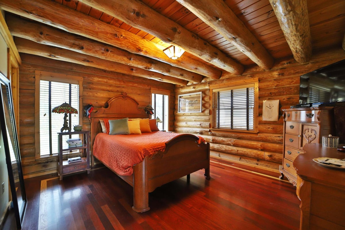This well-built log home sits on over 10 beautiful acres bordering hundreds of acres of public land ideal for trail riding and hunting. A covered porch welcomes you into the open floor plan featuring vaulted ceilings, a kitchen with custom maple cabinets, stainless steel appliances, granite countertops, and a maple butcher block island. The cozy living room offers a gas fireplace, office nook, and ample storage. The main-level primary bedroom includes a walk-through bath with a jetted tub and tile shower, while log stairs lead to a loft bedroom with a private deck overlooking the pasture and barn. The lower level includes a bedroom, full bath, living area with epoxy floors, laundry, utility room, and private library. The detached garage is split into a heated two-stall section and a single-stall area with stairs to a two-bedroom plus loft apartment. Perfect for a hobby farm, the property includes 10 oak stalls, a tack room, blacksmith shop, hay storage, and a newer steel roof. The land is partially fenced with separate sections, its own well for two self-watering stations, an arena, training area, open pasture, wooded riding trails, and direct access to hundreds of acres of public land for recreation or hunting. The property is conveniently located just 10 minutes from Hackensack and near the Crystal Lake public access--one of central Minnesota's clearest lakes with excellent swimming. Bring your outdoor toys, horses and farm animals and make this awesome property home!