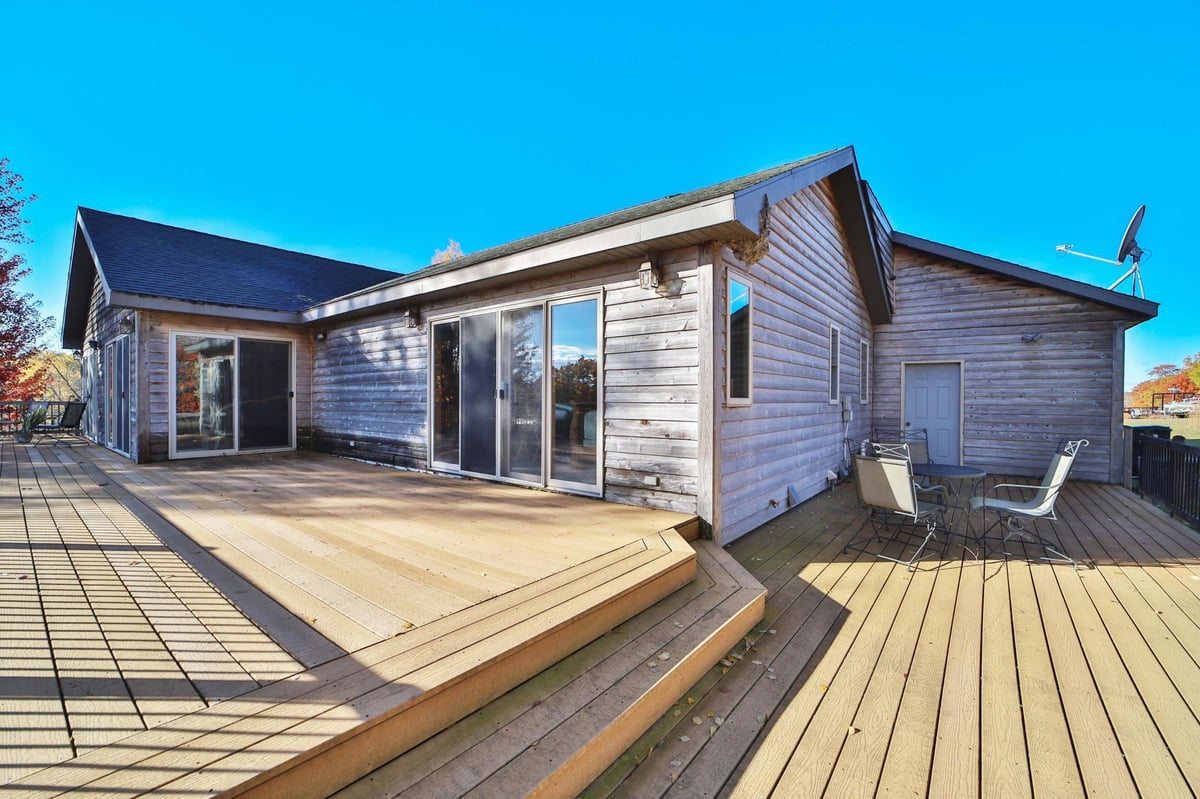 Must see three-bedroom, three-bathroom, 2900 square-foot home on Pine Island Lake with 410 feet of frontage. Main level of the home features a large wrap round deck with composite decking, great views from kitchen and living area, including three sliding glass doors to the deck. Large four-season porch with knotty pine tongue and groove vaulted ceilings, including a wood-burning stove with rock wall backdrop. Large primary bedroom with walk-in closet and en-suite full bathroom. Plus laundry/mudroom room on the main level. Lower-level features bar with walkout from the living room, kitchenette area, and lots of storage. Two more bedrooms and a bathroom. Outside you will enjoy the gazebo and plenty of room to explore the trails through the woods and down to the lake which is great for fishing, kayaking, and canoeing. Part of the Sylvan shores association which gives you access to their sport courts, club house, and beach area. Schedule your showing today!