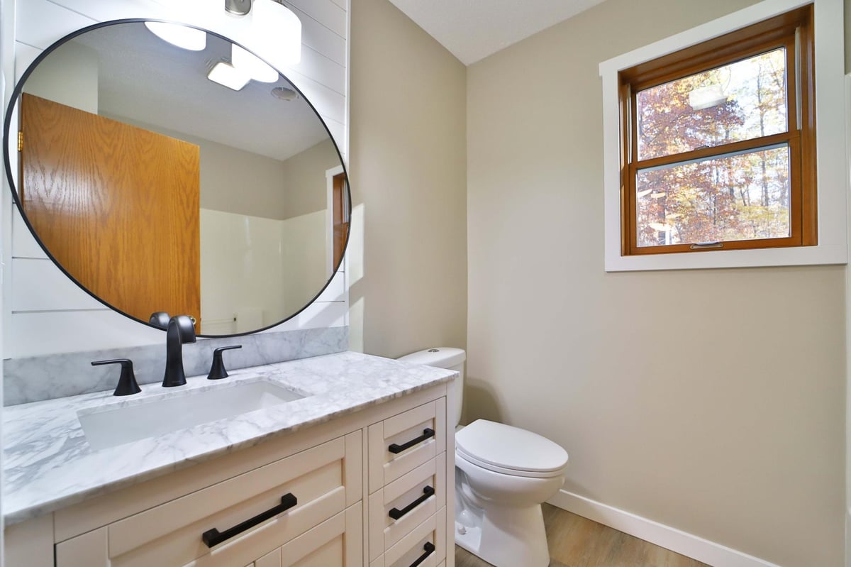 Don't miss this remodeled three bedroom, two bath executive Brainerd home. Home is located in the heart of the lakes area. Close to Gladstone, Round and North Long Lakes. Enjoy end of the road privacy on this 2+ acre wooded lot. Lot borders 195 acres of state land that borders Gladstone and Moody Lakes. This home is turn key ready with new flooring through out, new granite counter tops and tiled back splash in the kitchen, new kitchen appliances, new light fixtures, remodeled bathroom with new tiled shower and free standing tub, vaulted ceilings, stone fireplace, main floor laundry, new deck, freshly painted interior, pantry, steel siding, a full unfinished basement, an attached two car garage and another detached garage for the toys. Set up a showing today.